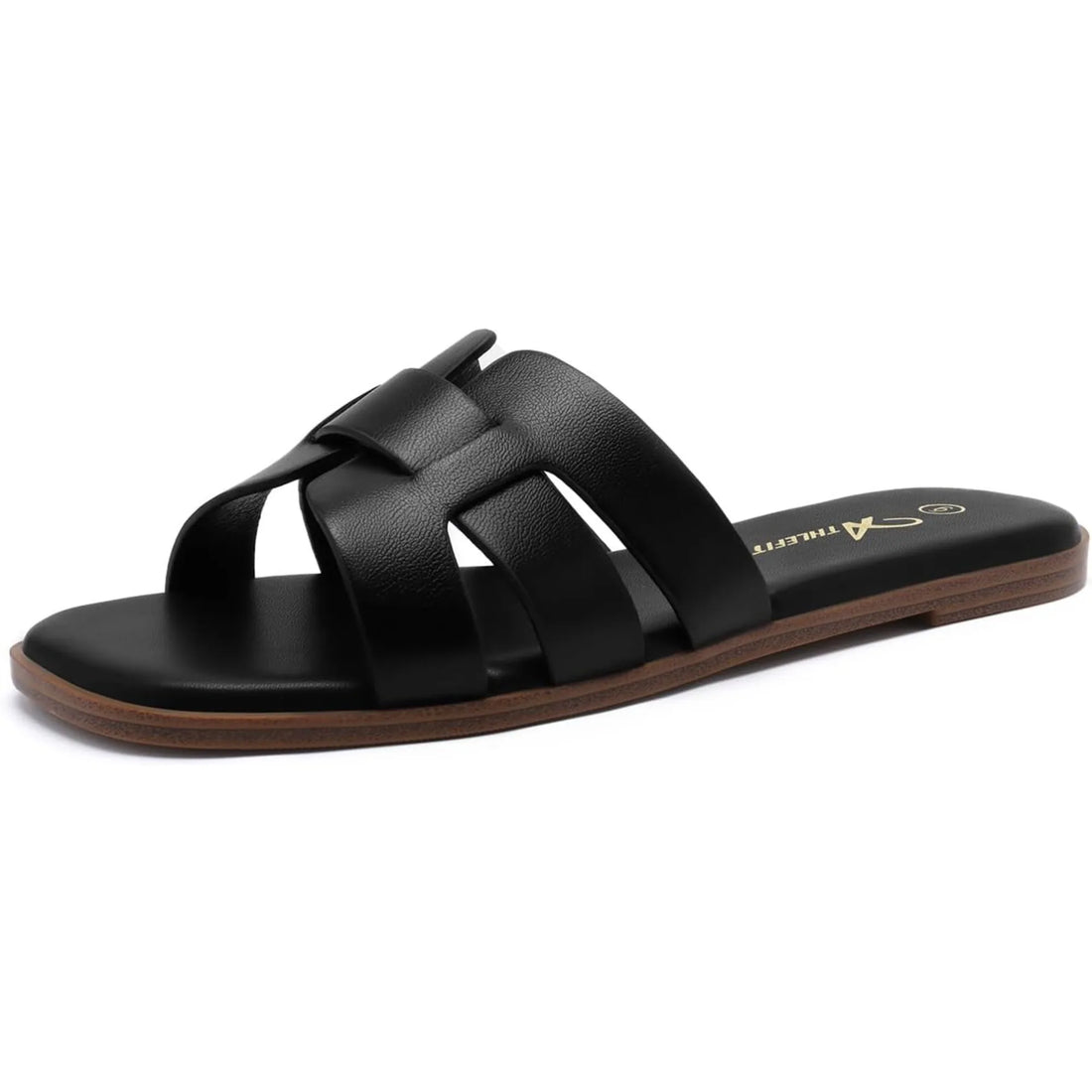 Women's Flat Sandals Dressy Summer Square Open Toe Slip On Leather Slide Sandals Size Chart...