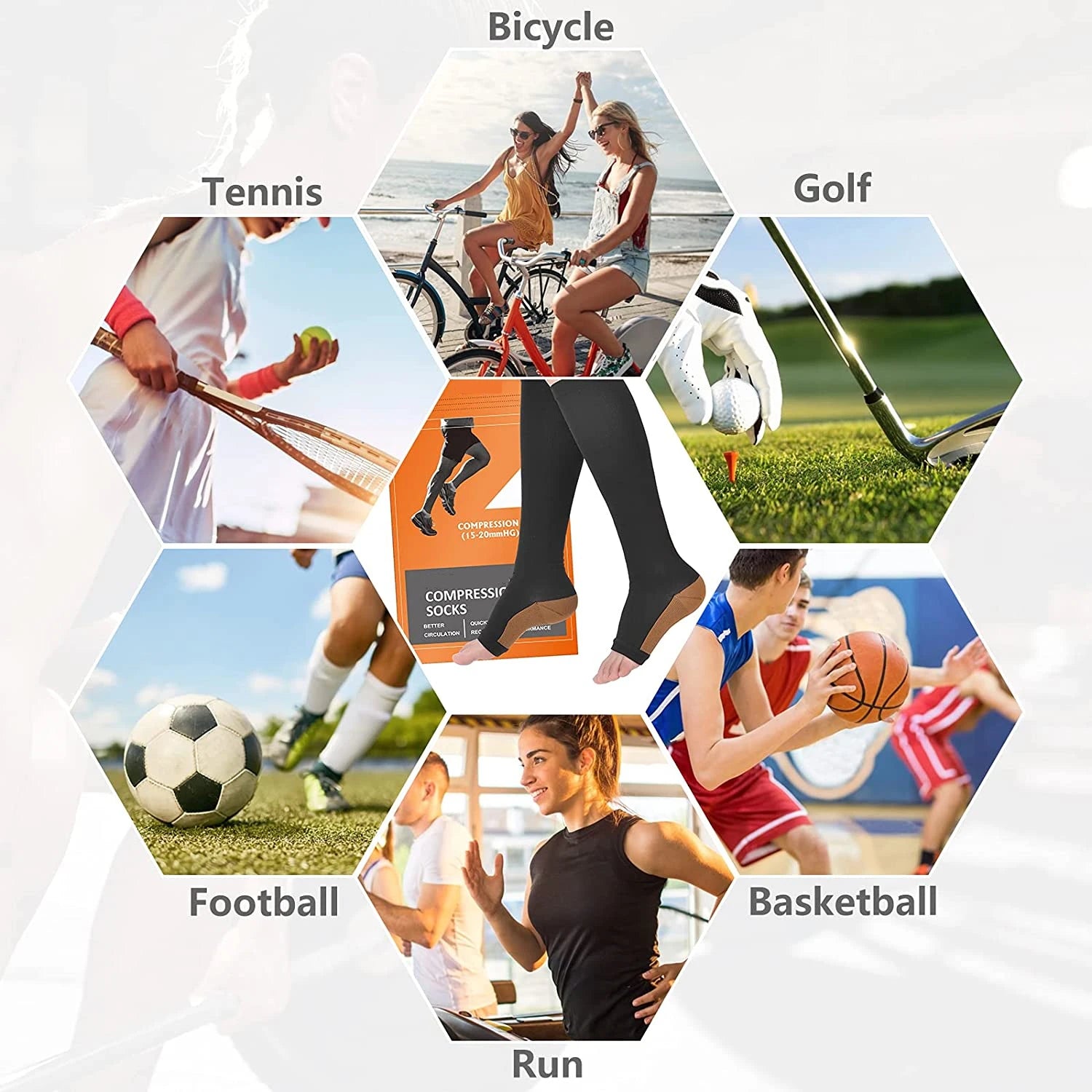 Compression Socks S-XXL Medical Prevent Varicose Veins Toeless Support Hose for Women Men 1 Pairs