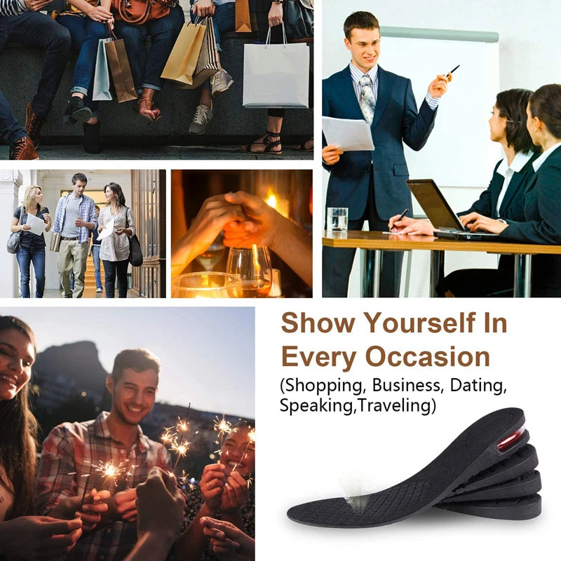 Gain instant height and enhanced comfort with these Adjustable Height Increase Insoles. Designed with a 4-layer air cushion system, they provide 3cm to 9cm (1.18" to 3.54") of height increase while offering shock absorption and pressure relief.