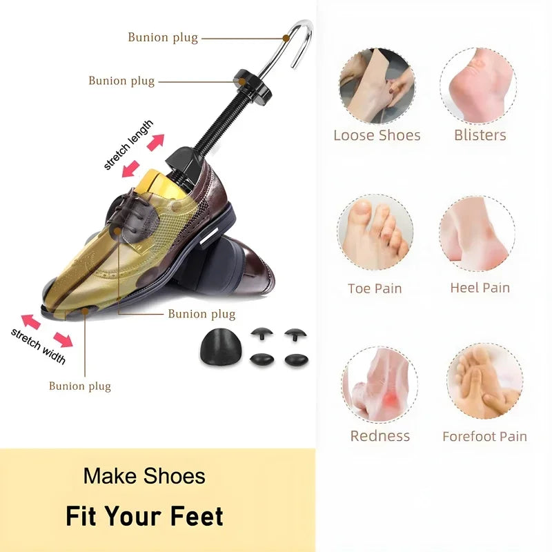 - 4-Way Stretching: Adjusts in width to widen shoes and in length to increase shoe size, helping improve the fit. Ideal for relieving pressure from bunions, corns, or calluses.